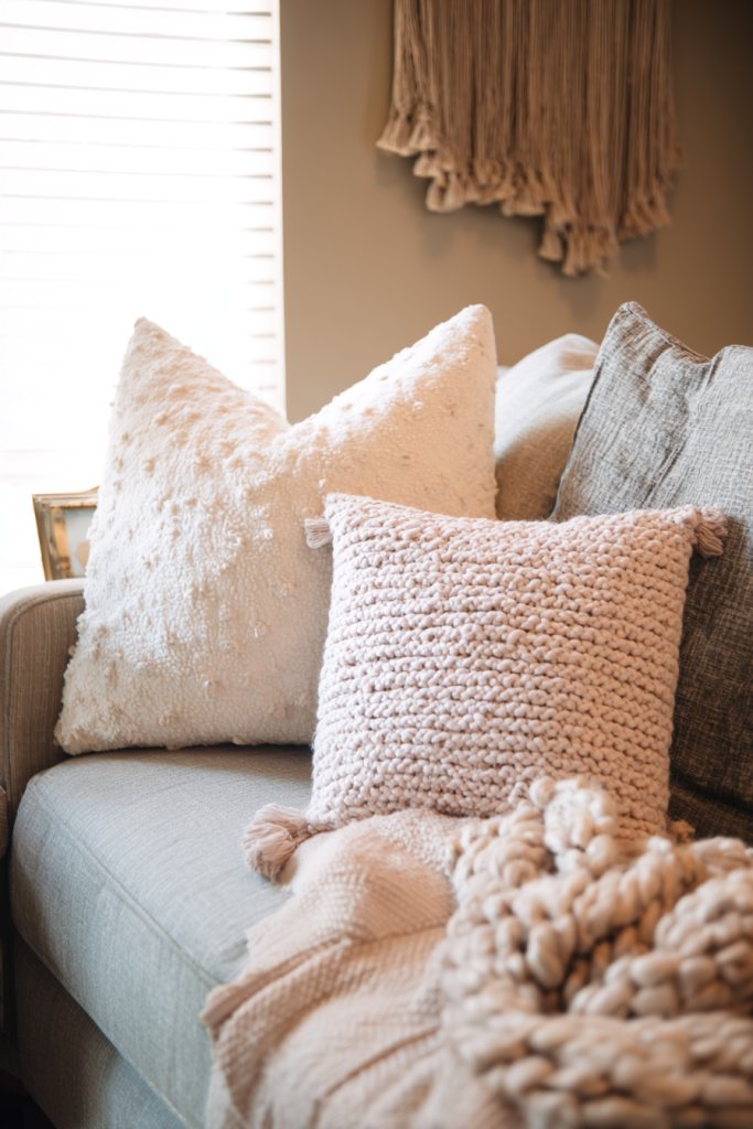 1. Layered Textiles: Plush Throw Blankets and Cushions