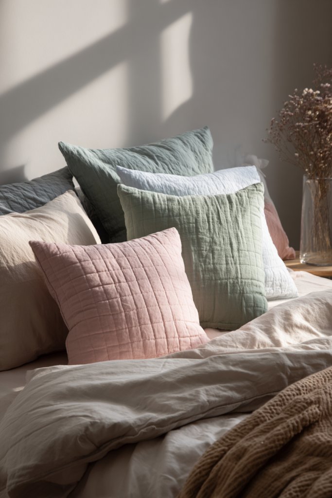 Use pastel or muted shades in small doses—pillows, throws, or lamps—for a subtle touch, or go all-in with larger furniture pieces for a more immersive look. Mix textures—matte, satin, or linen—for added depth. Layer with neutral tones like beige or gray to keep the palette balanced. During different seasons, swap in warmer or cooler shades to reflect your mood or trends.