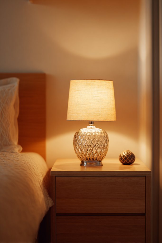 Imagine a vintage-inspired nightstand with a textured ceramic lamp, a small decorative tray, and a favorite book or a framed quote. The layered accessories add personality and charm without cluttering the space. The soft glow from the lamp creates a calming ambiance perfect for winding down. The overall look is polished and intentional, inviting relaxation and style.