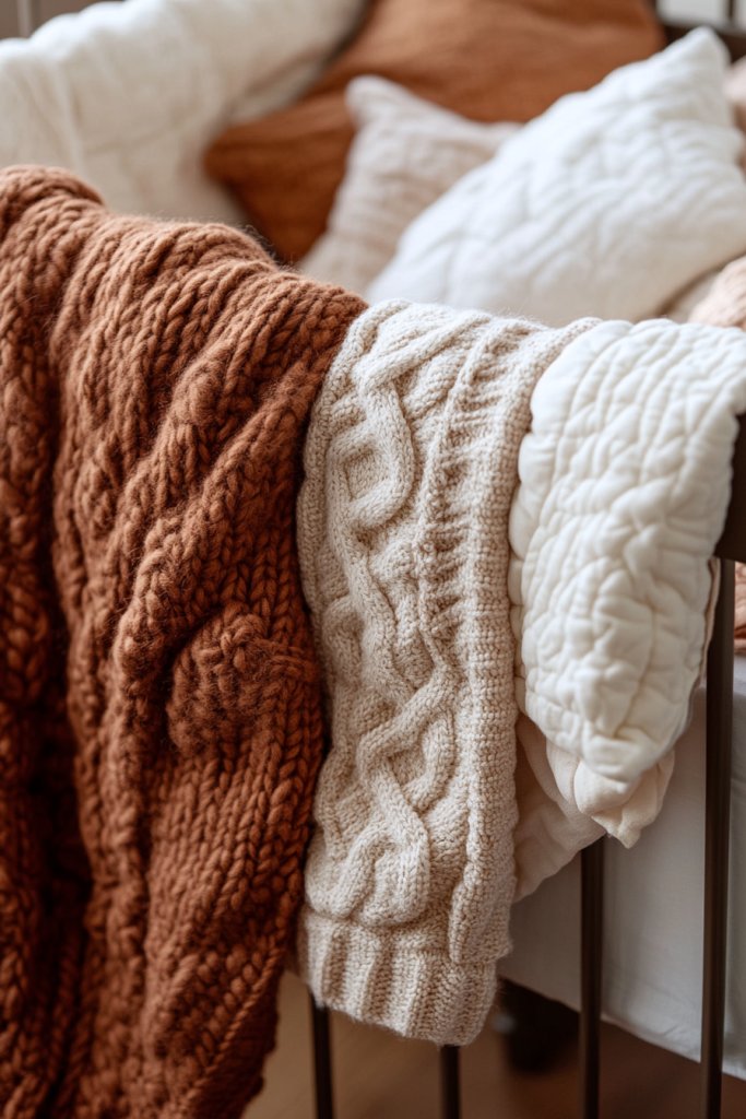 Mix knitted throws with quilted covers on cribs or changing tables for variety. Use different patterns—cables, braids, or simple ribbing—to add visual interest. Seasonal swaps can keep the textiles feeling fresh, with lighter fabrics in summer and thicker knits or quilts in winter. Incorporate soft, plush fabrics for ultimate comfort.