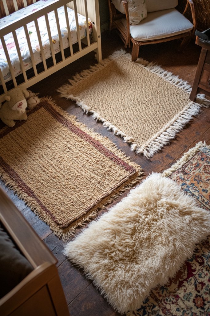 Does your nursery floor feel cold or hard underfoot? Layered rugs can turn that uncomfortable surface into a plush paradise for your baby and yourself. They add warmth, sound absorption, and a cozy aesthetic—all in one fell swoop.