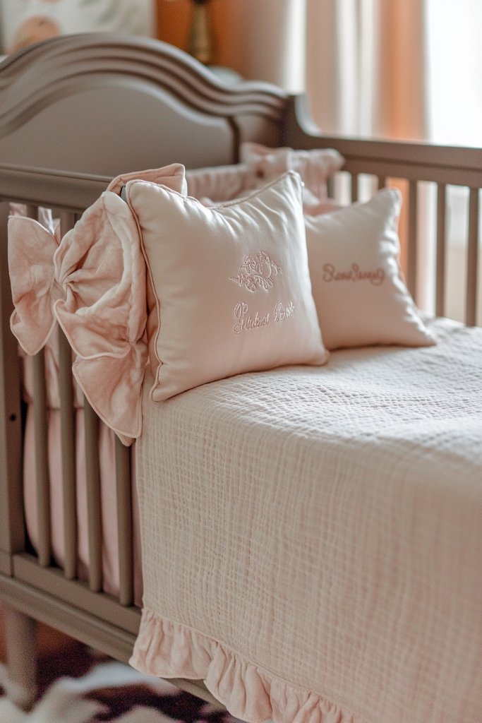 Personalize with hand-knit items or custom quilting with your baby’s initials. Use textiles that match or complement your nursery’s color palette or theme. Incorporate a few textured cushions or throws to encourage tactile exploration. Keep accessories simple and safe, avoiding loose threads or embellishments.
