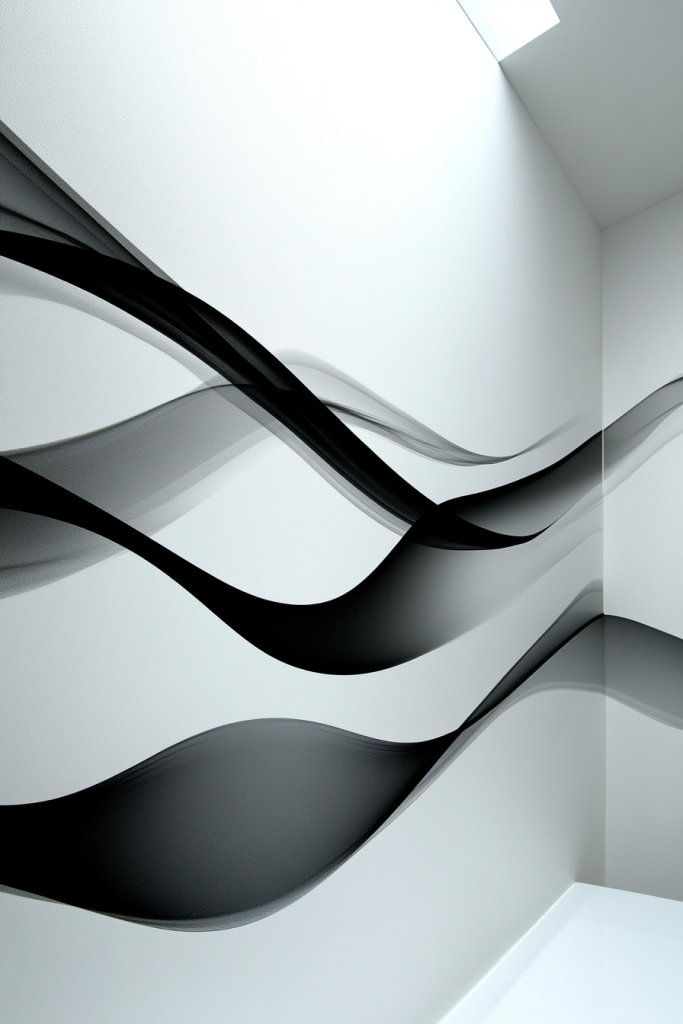Enhance the movement by adding metallic or holographic finishes that catch the light. Combine with textured wall paints or 3D architectural elements for a layered effect. Use lighting strategically to cast shadows that emphasize the curves and lines. Personalize by incorporating your favorite colors or abstract themes that resonate with your mood or personality.