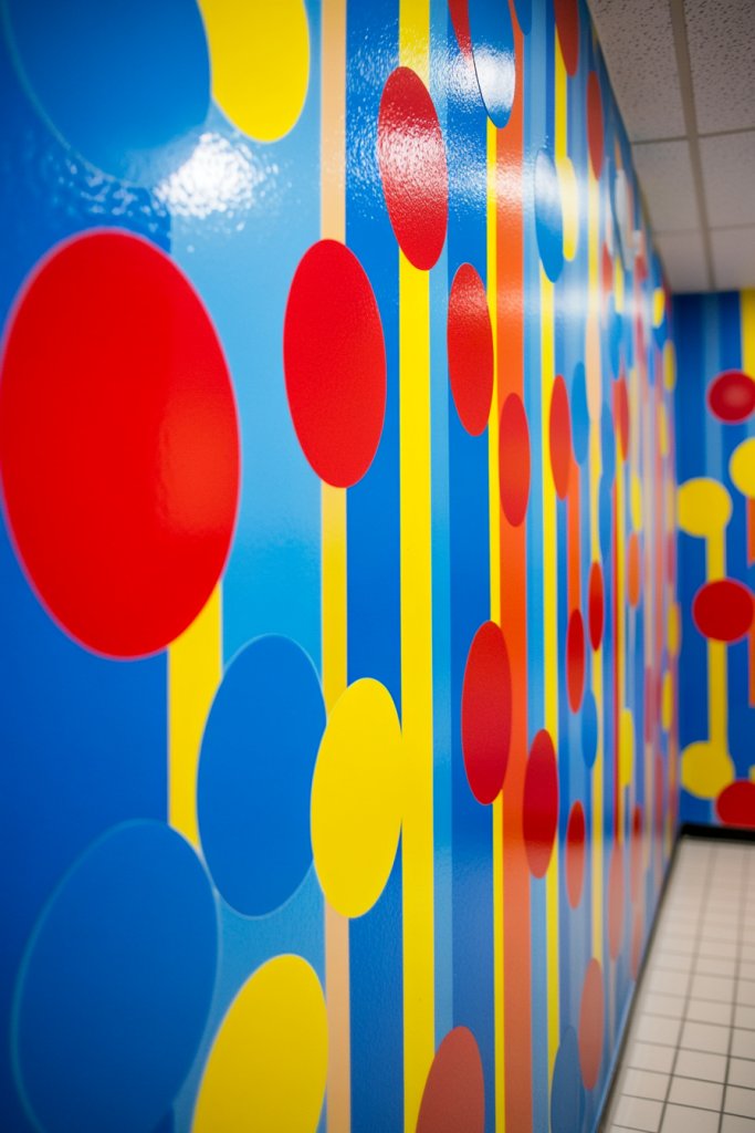 Imagine large, vibrant rectangles or irregular shapes painted or decal-ed onto a wall, creating a modern art piece. The high-contrast colors pop against neutral backgrounds, giving your bathroom a fresh, energetic vibe. These blocks can delineate different zones—like a towel area or a vanity—while adding a splash of color that enlivens the space.