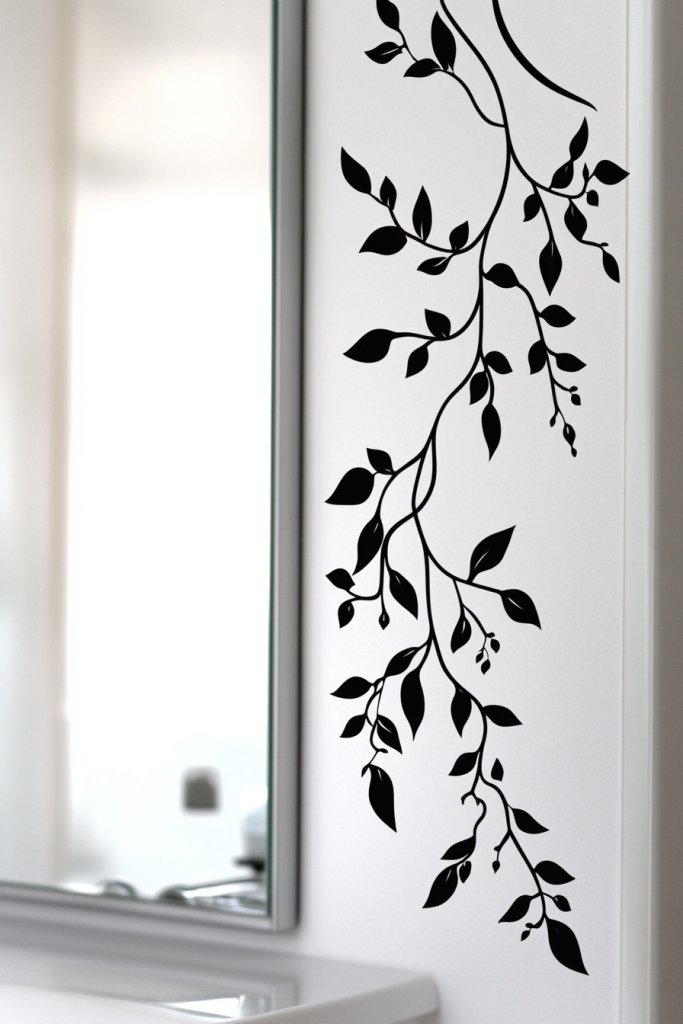Mix different botanical motifs for a layered look—like roses intertwined with abstract leaves or delicate branches. Choose colors that complement your overall palette, from classic black or white to soft pastel shades. They work well with textured wall finishes, matte paints, or even metallic accents for a modern twist. These decals suit both sleek contemporary and vintage-inspired bathrooms.