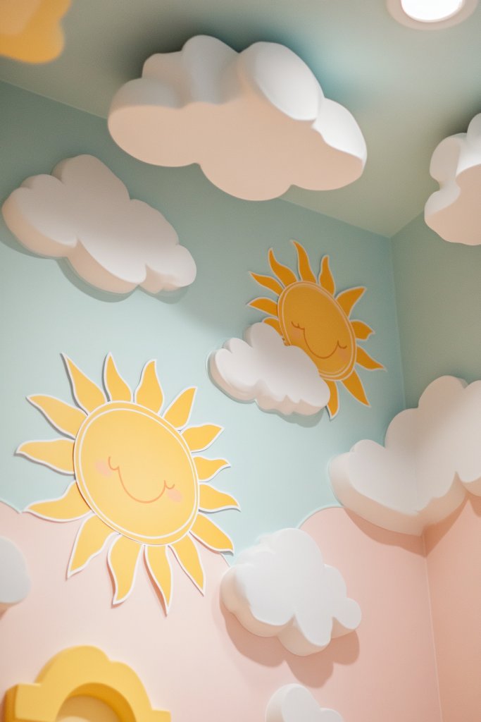 5. Whimsical Cloud and Sun Decals for a Fun, Bright Atmosphere
