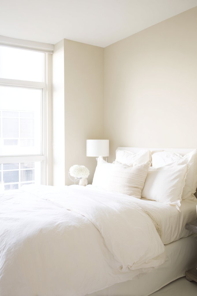 Picture a room with a neutral palette—soft whites, beiges, and light grays—and only essential furnishings. The bed has sleek, unadorned linens, and surfaces are free of excess decor. Textured textiles and subtle lighting add depth without cluttering. The room exudes calm, inviting you to unwind and breathe.