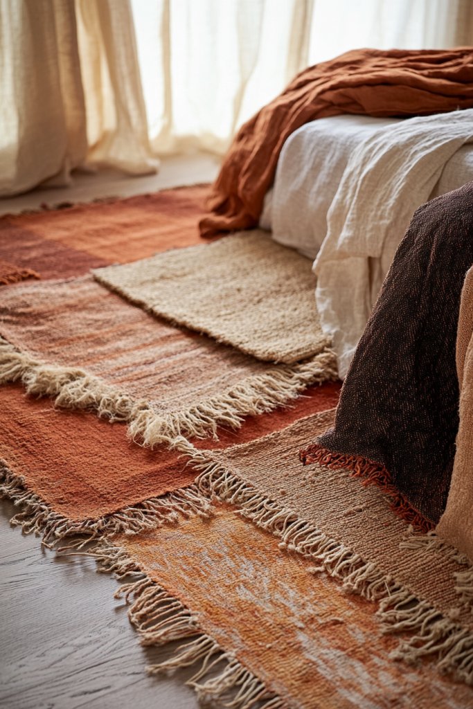 1. Layered Rugs in Earth Tones for Cozy, Textured Floors