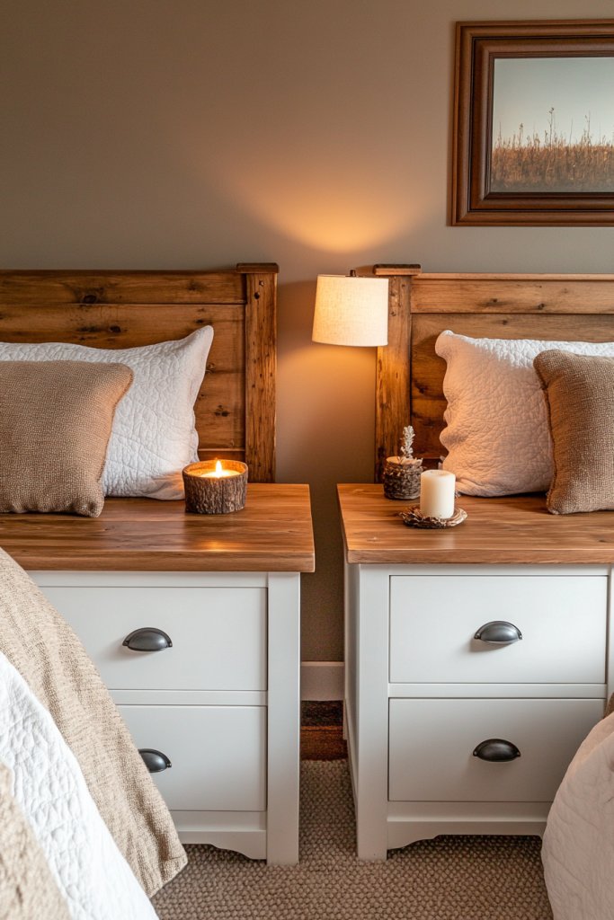 Tired of cluttered bedside tables that distract from your decor? Minimalist nightstands with rustic accents offer a clean, functional look that still feels warm and inviting. They keep essentials within reach without overwhelming the space. Less clutter, more style.