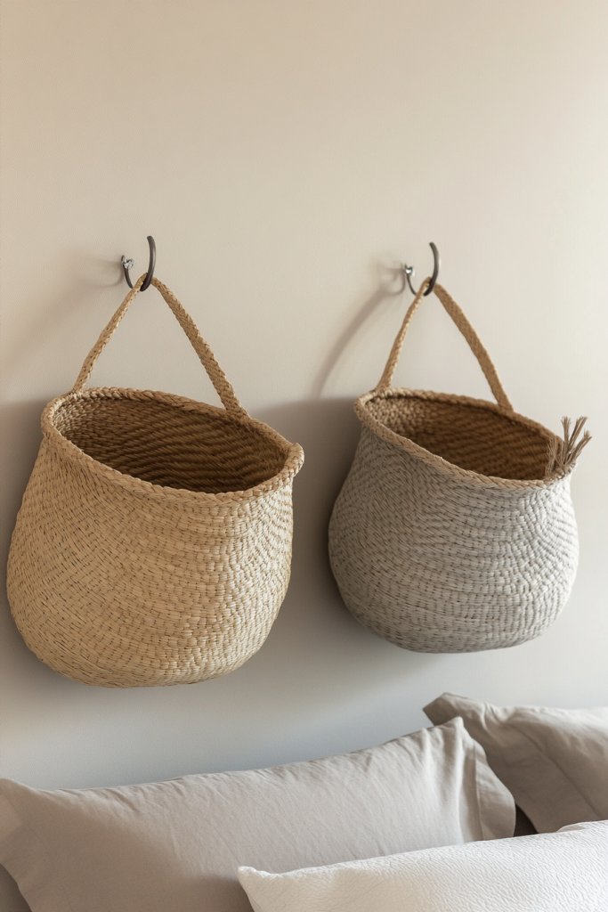 7. Woven Wall Baskets or Hampers for Practical Decor