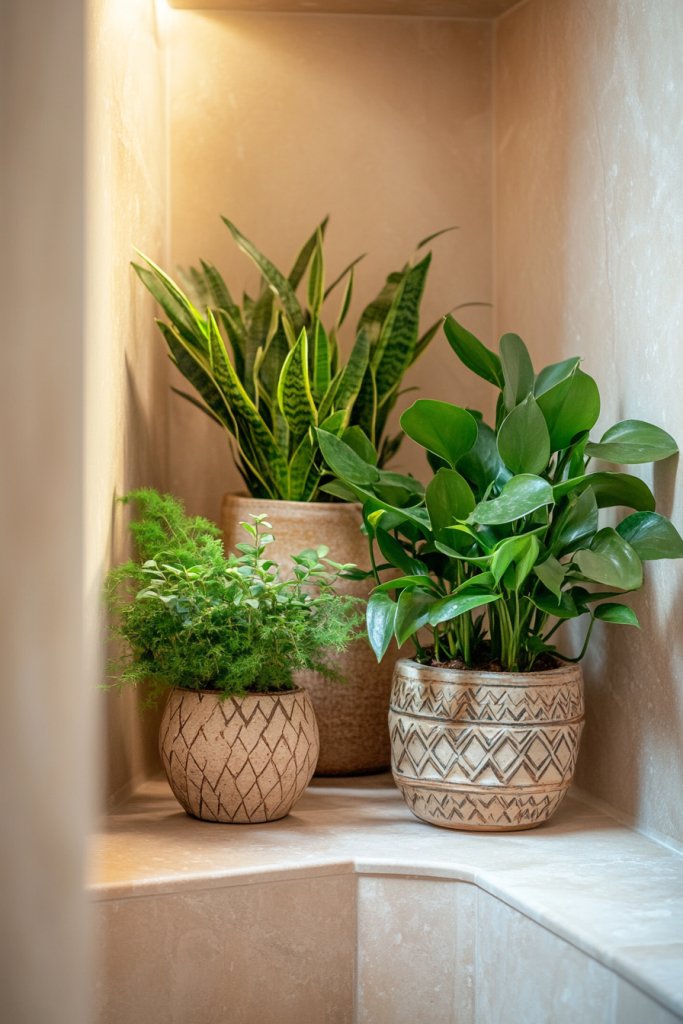 Choose plants like succulents, cacti, or air plants that require minimal watering. Use planters with unique shapes, patterns, or glazes that match your decor. Create a dedicated corner or integrate plants into shelving or vanity areas. Change up the arrangement seasonally or by mood to keep it dynamic.
