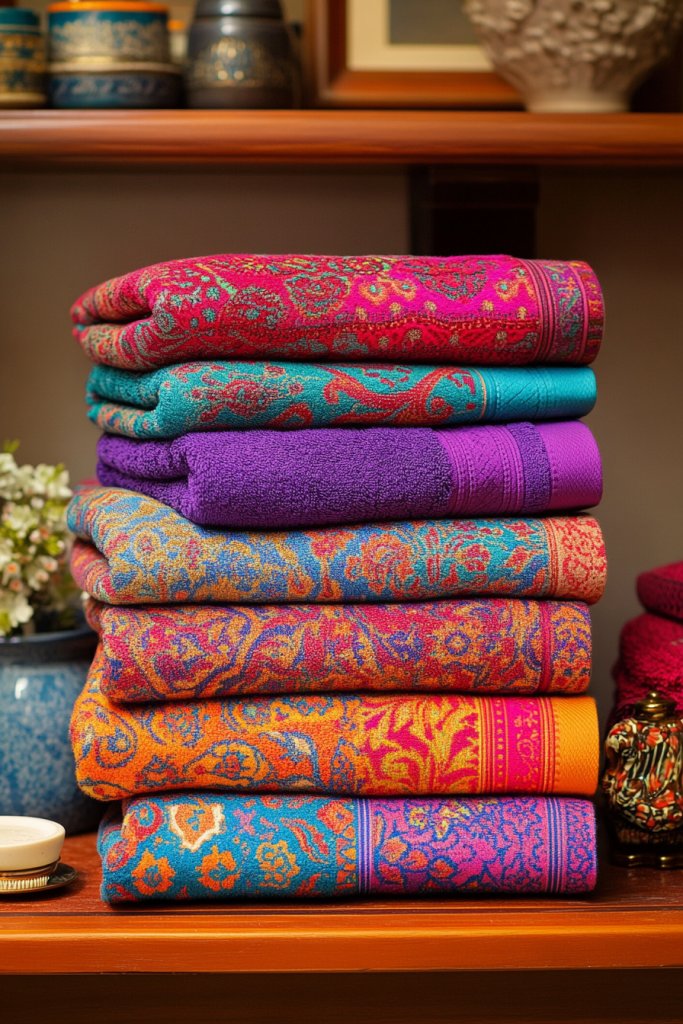 14. Use Colorful or Patterned Towels and Linen Accessories