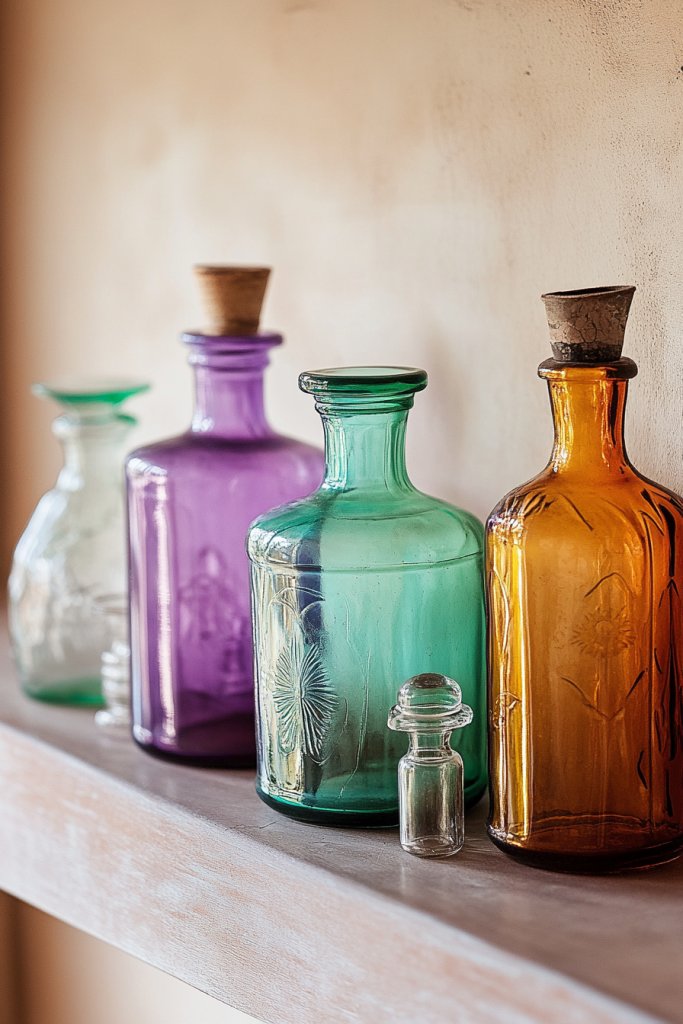 17. Use Colorful Glass Bottles or Vintage Jars for Storage and Decor