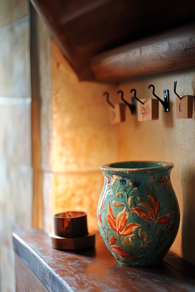 18. Incorporate Artistic DIY Elements like Painted Vases or Handmade Hooks