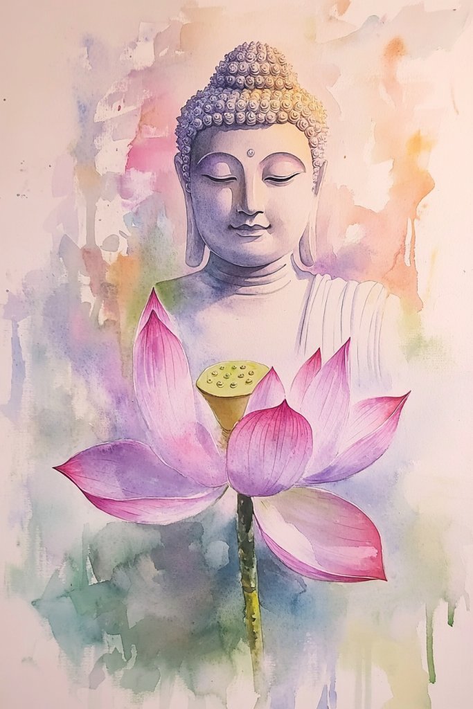 Seeking a symbol of spiritual purity that also feels artistic? The lotus flower represents enlightenment, rebirth, and purity—making it a perfect motif for a Buddha artwork. If you want your decor to reflect deeper meaning without overwhelming, watercolor lotus motifs paired with Buddha can be both subtle and profound. It’s a calming reminder of growth and serenity.