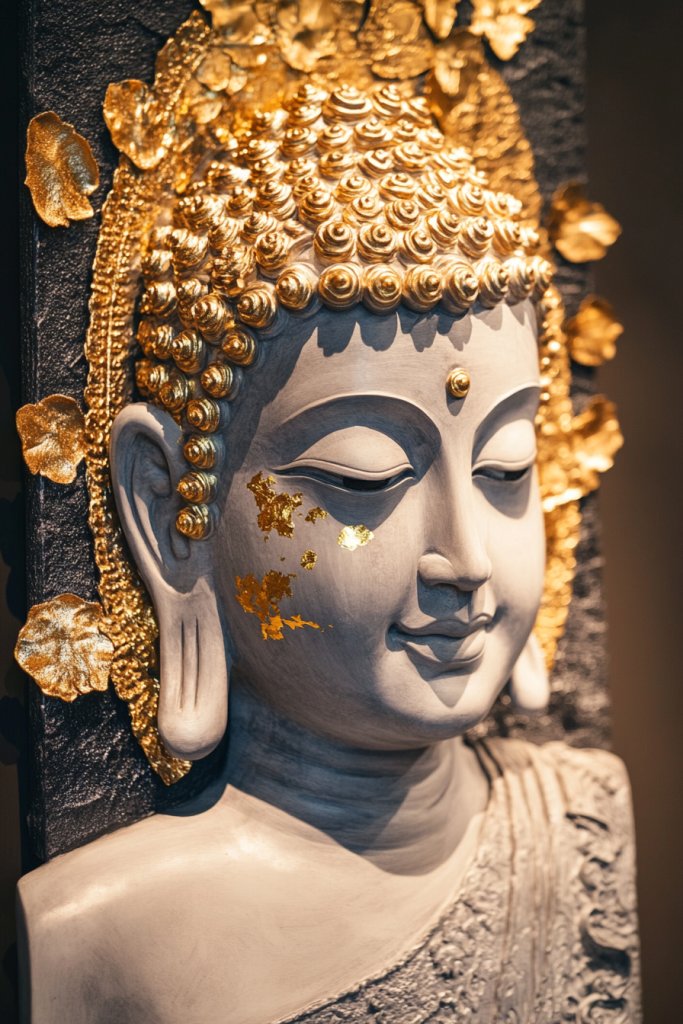 10. Gold Leaf Accents on Buddha Portrait for Elegant Decor
