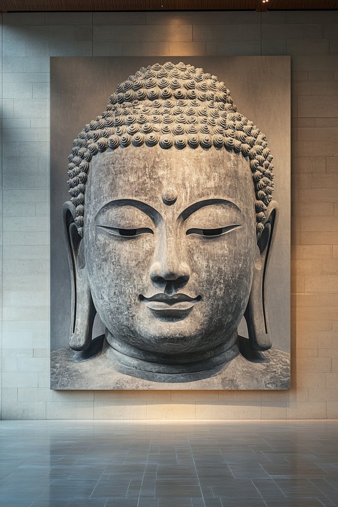 Want to make a bold statement in your space? An oversized Buddha canvas can serve as a powerful focal point that instantly draws attention. If your room lacks impact or needs a unifying centerpiece, this idea transforms your decor with a commanding presence. It’s about turning serenity into a striking visual statement.