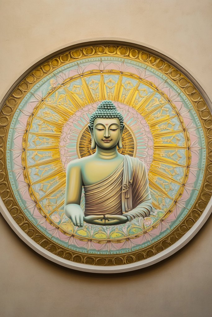 9. Serene Buddha with Mandala Background in Soft Tones