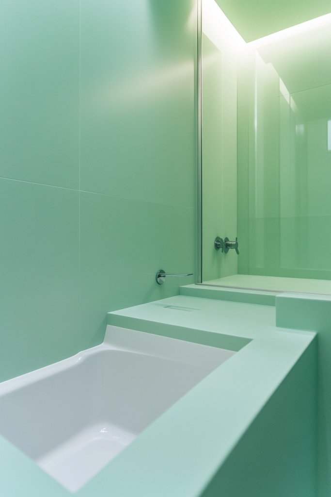 Imagine walls painted in a soft, seafoam green that mimics the gentle waves of the ocean. The subtle hue reflects light beautifully, creating a sense of openness. Textured tiles in similar shades add depth without cluttering the space. The overall effect is a peaceful retreat where every element whispers tranquility, and the air feels lighter.