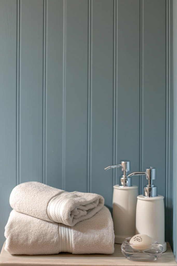 This calming palette works well in both small and large bathrooms. For a cozy vibe, pair it with warm wood accents or sandy-colored accessories. In larger spaces, add crisp white trim or accents to enhance the airy feel. During summer, introduce light linen textiles, while in winter, layer with plush towels in complementary shades.
