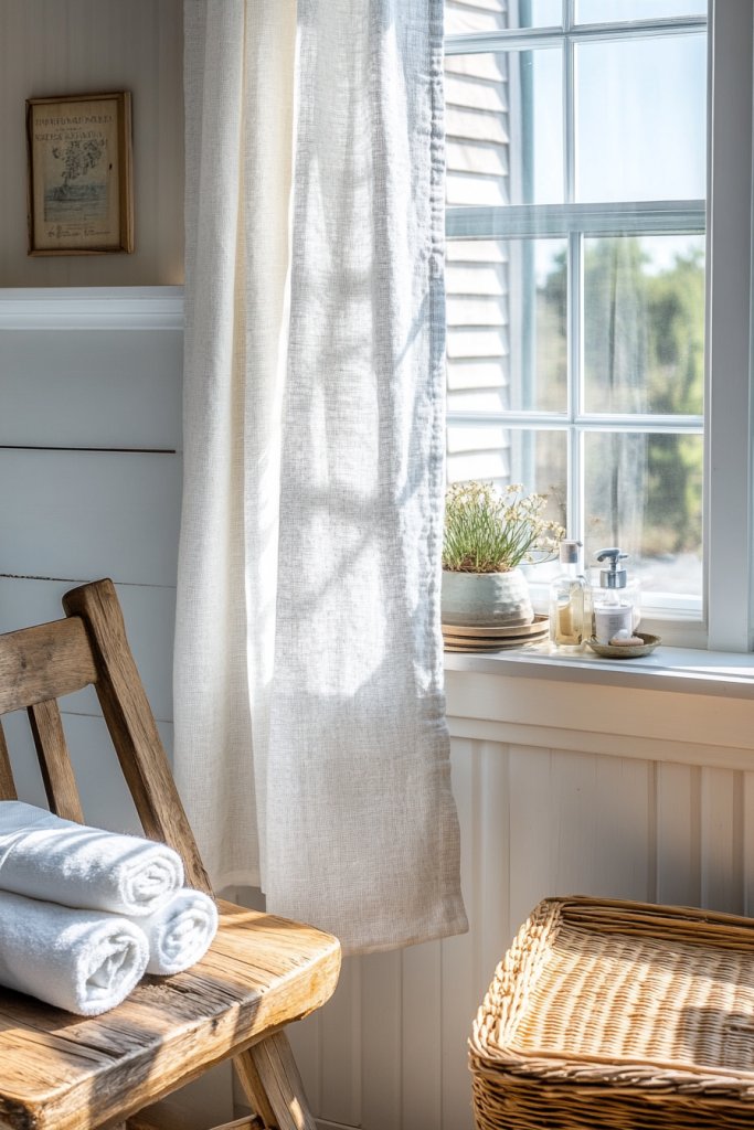 Light, airy window treatments instantly brighten your bathroom and create a breezy, seaside feel. They’re practical, easy to update, and essential for a coastal retreat. Let the sunlight and gentle fabrics transform your space into an oasis. Ready to let the light in?