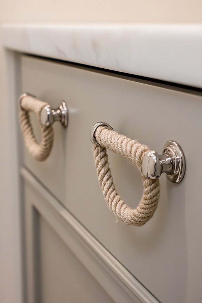 Mix and match hardware finishes—brushed nickel, matte black, or antique brass—to customize the look. Use rope pulls on drawers or cabinet doors for a nautical touch. For a more modern feel, opt for sleek, minimal hardware with subtle rope detailing. Seasonal swaps, like adding shell or coral accents, keep the theme fresh.