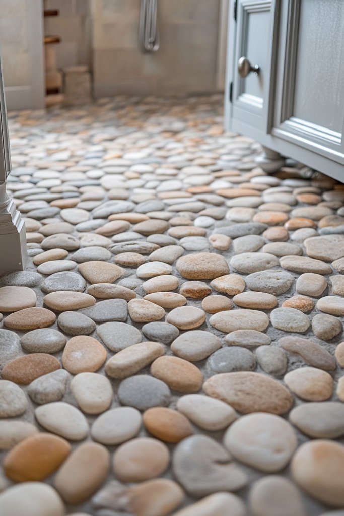 6. Beach Pebble Flooring for a Natural, Tactile Surface