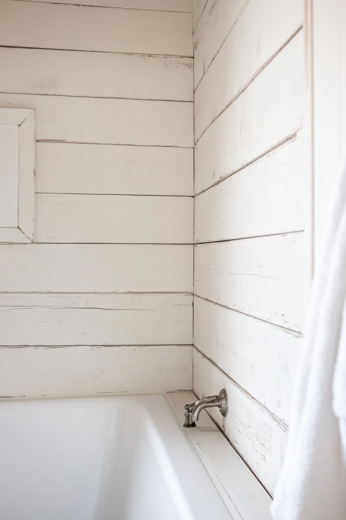 Choose distressed or reclaimed wood for an authentic look, or opt for smooth, painted planks for a more polished style. Pair with nautical hardware or vintage fixtures to enhance the cottage charm. During different seasons, layer with textured textiles or cozy accessories to change the mood. Use in small or large bathrooms for maximum impact.