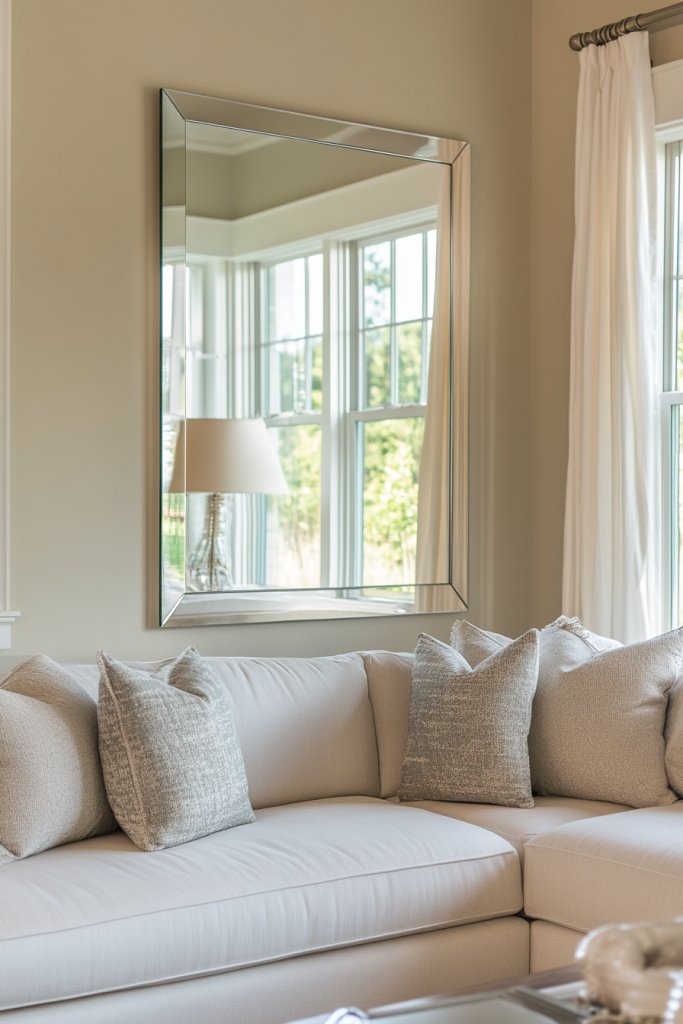 Personalize with subtle touches like frosted or textured glass for a unique look. Pair the mirror with minimalist wall decor or sconces that won’t compete with its simplicity. Use it to reflect a beautiful outdoor view or an inviting corner in your room. You can also lean a large mirror against a wall for a more casual vibe. Seasonal decor can be added around the edges to refresh the look.