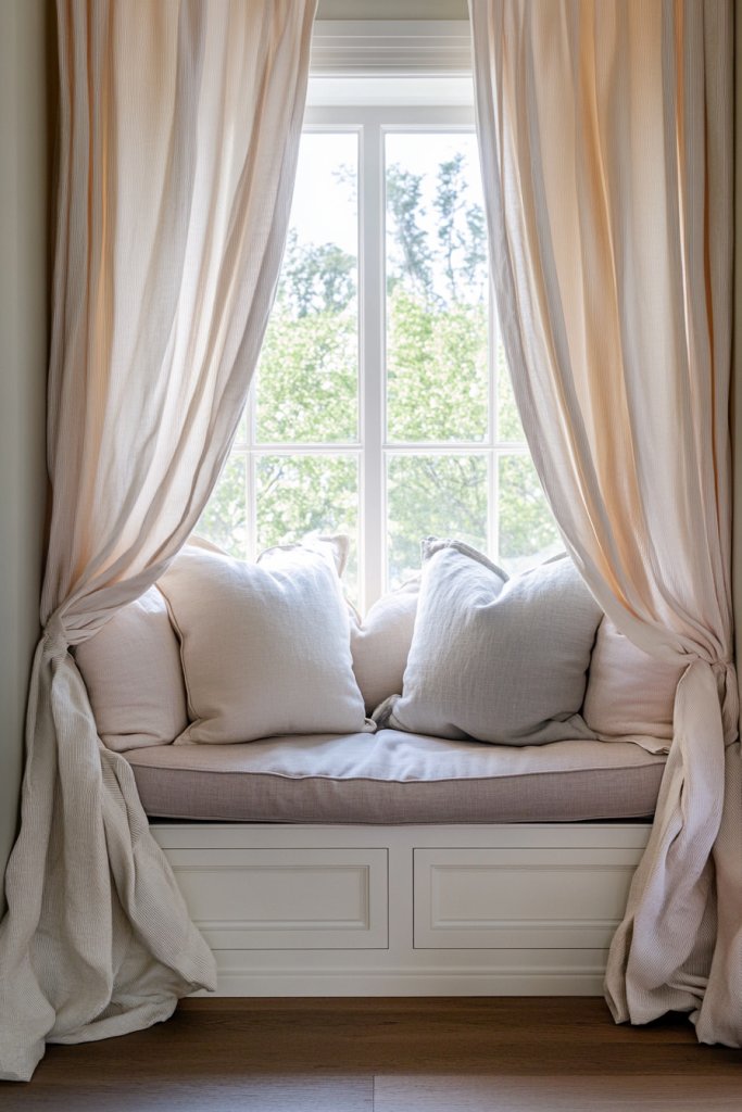 10. Window Seat with Cushions and Curtains