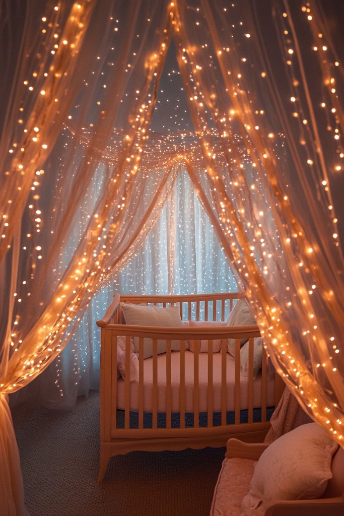2. Fairy Light Canopy Over the Crib