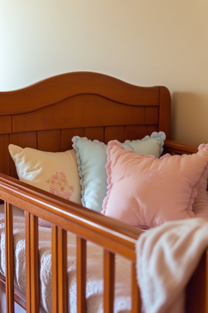 Personalize with embroidered names or initials on pillows or loveys. Incorporate motifs or themes your child loves, like animals or stars. Use decorative piping or trims to add a finished look. Rotate pillows seasonally or as your child’s preferences change.