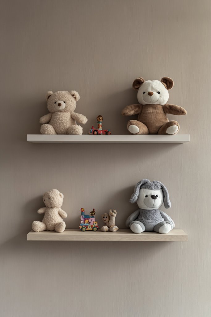 9. Wall-Mounted Shelves with Soft Toy Displays