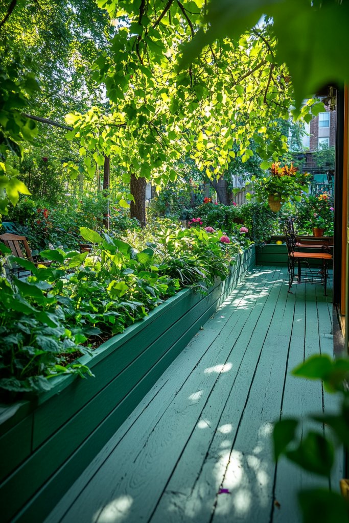 Want to bring lush greenery directly to your outdoor living area? A green deck with built-in planter borders creates a seamless blend between your deck and garden. It adds color, texture, and a refreshing vibe that makes every outdoor moment more lively and inviting.