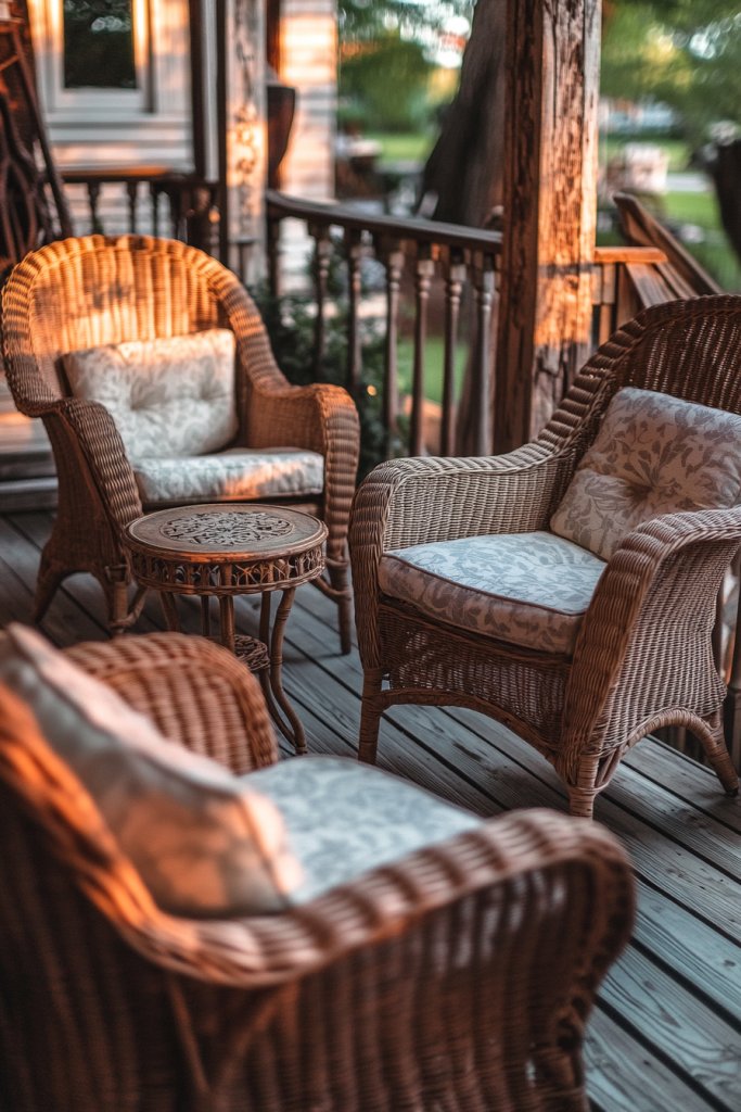 Select weatherproof wicker furniture designed for outdoor use, ensuring it retains its vintage charm while resisting the elements. Pair with distressed or painted wood furniture for a layered look. Add cushions made from outdoor fabric to increase comfort. Arrange furniture in conversational groupings, and complement with vintage accessories like lanterns or ceramic pots. Regular cleaning preserves the wicker’s beauty.