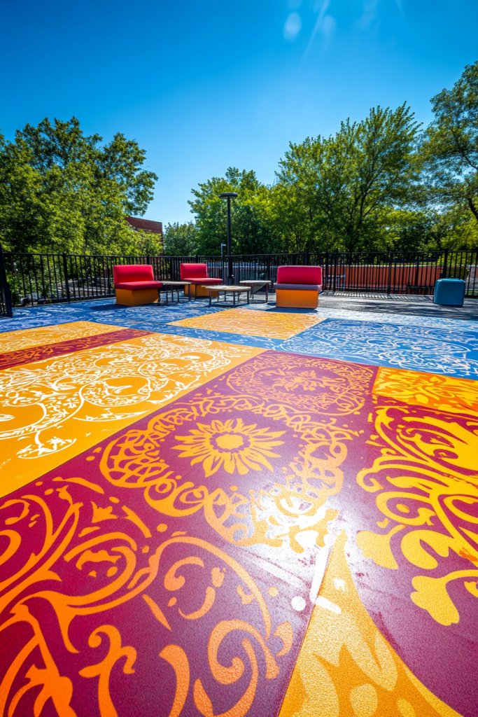 Frame your painted surface with decorative borders or complementary accessories. Add outdoor cushions or furniture in colors that match or contrast with your design. Incorporate DIY garden art or sculptures nearby for a cohesive artistic theme. Use lighting strategically to highlight the patterns at night. Personal touches make your deck a one-of-a-kind masterpiece.