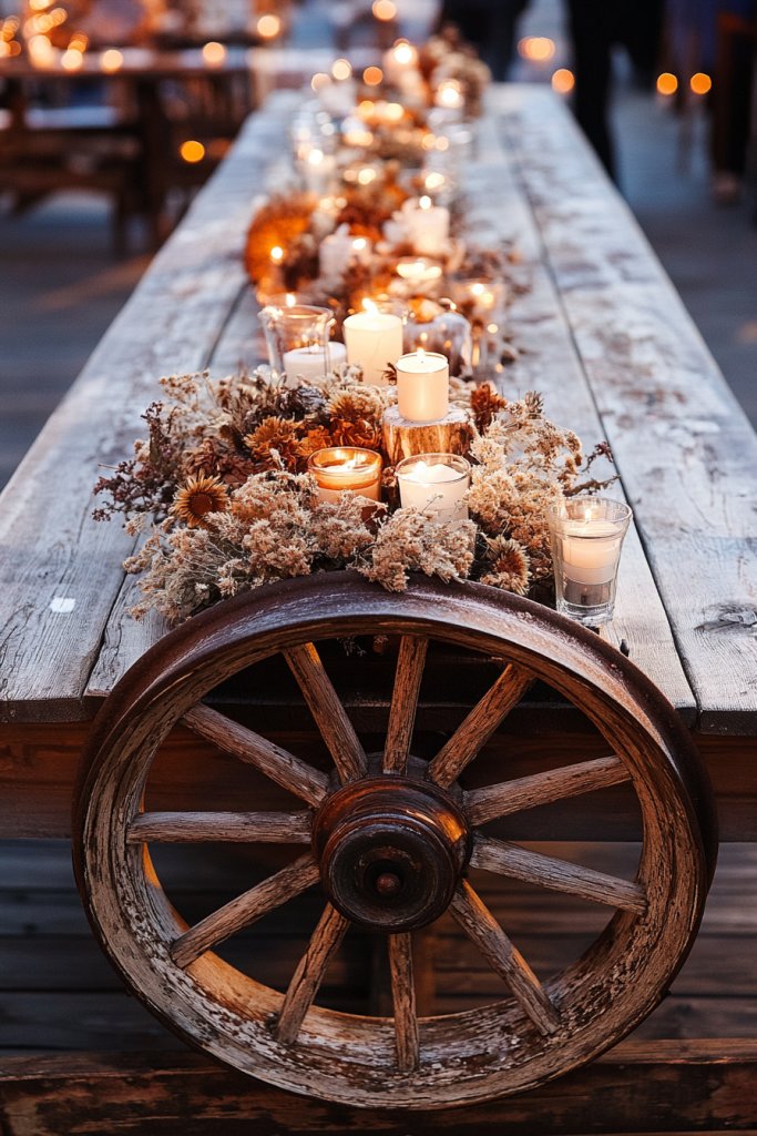 3. Repurposed Wagon Wheel as a Centerpiece Base