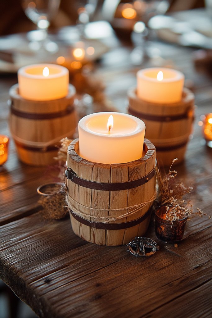 6. Barrel-Style Candle Holders with Rustic Accents