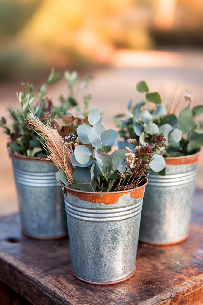 7. Tin Buckets Filled with Seasonal Botanicals