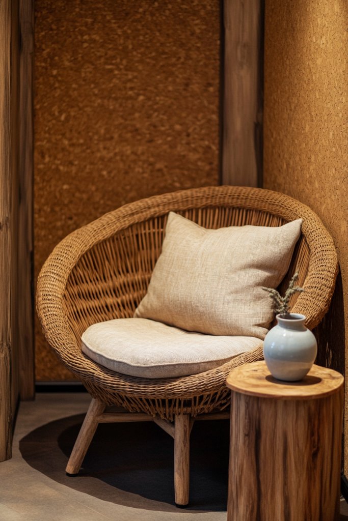 11. Incorporate Natural Elements: Use Wood Accents, Rattan Furniture, or Cork Details for a Rustic Charm