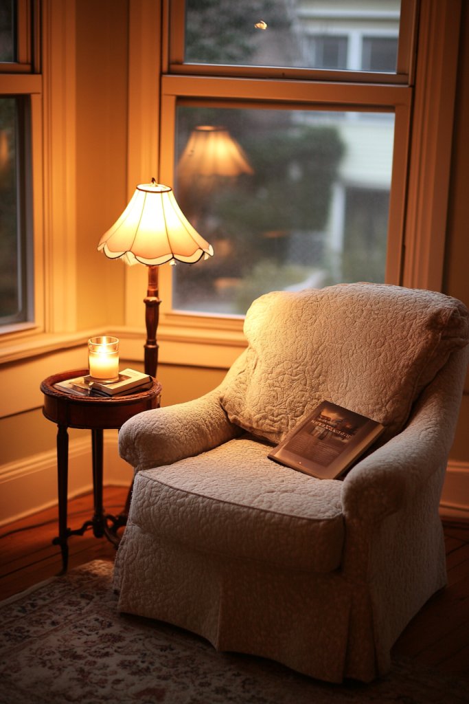 12. Create a Reading Nook: Arrange a Comfortable Chair with a Side Table and Good Lighting for Relaxed Reading