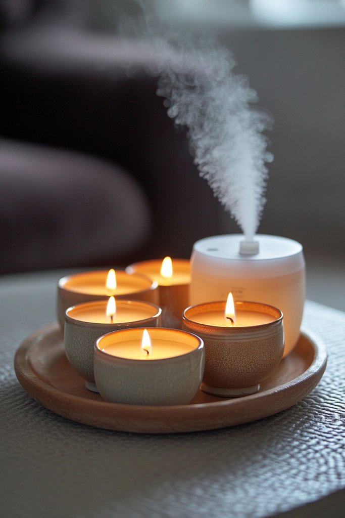 Choose candles and diffusers in styles that match your decor—minimalist, boho, or rustic. Opt for natural, essential oils in scents like lavender, chamomile, or sandalwood for relaxation. Change scents seasonally or based on mood—spicy for winter, citrus for energizing summer mornings. Keep candles in decorative holders or diffusers on sleek trays to add visual interest.