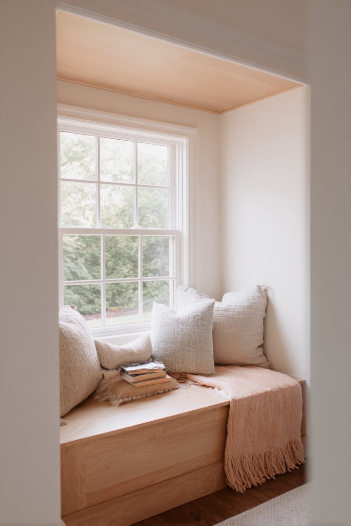 Picture a built-in bench nestled into your window nook, topped with plush cushions in soft fabrics. Layering throws and pillows makes the space inviting and comfortable. The window frame acts as a natural border, creating a cozy enclave. Add small potted plants or fairy lights (if not restricted) to enhance the ambiance. It’s a little slice of heaven right in your home.