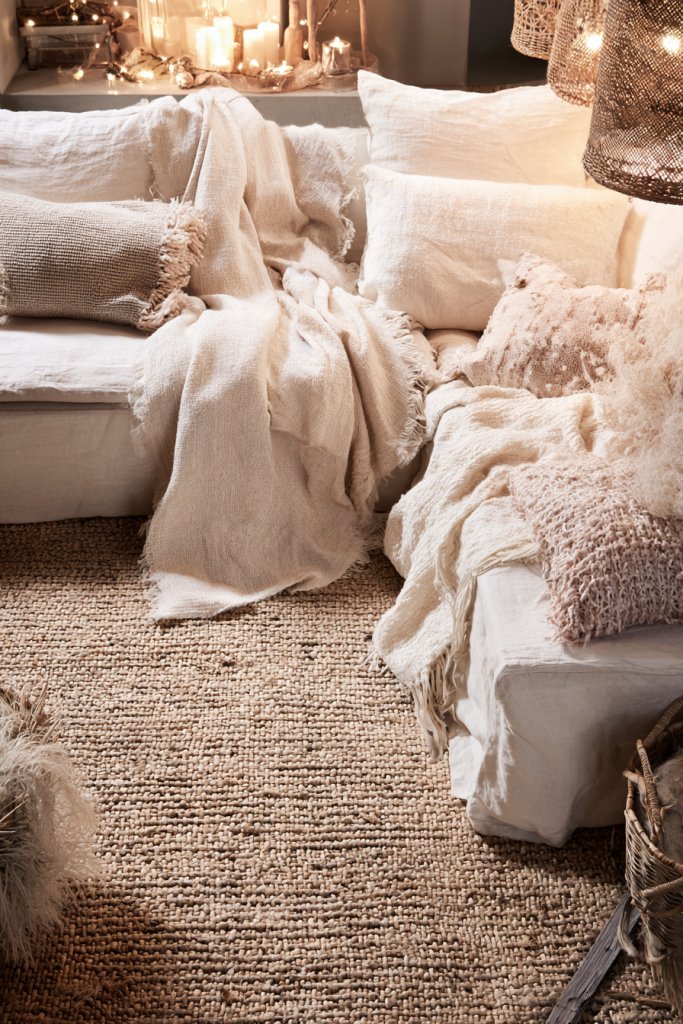 Switch to seasonal textiles—lightweight cotton or linen for summer, chunky knits or faux fur for winter—to keep the vibe fresh. Mix patterns and textures for an eclectic look, or stick to a monochrome scheme for sleekness. Add a large, textured area rug to anchor the space and bring everything together. Incorporate throws and cushions in your favorite colors to personalize further.