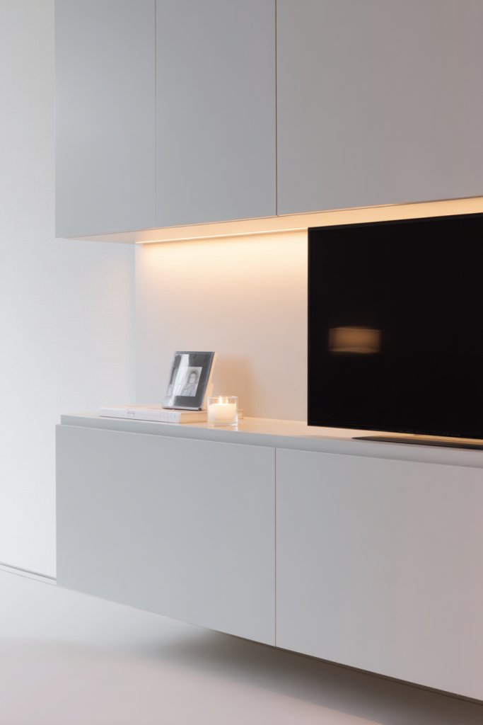 Imagine sleek, slim shelves installed above a sofa or bed, holding books, candles, or small decorative objects. The clean lines and simple design draw the eye upward, emphasizing height and openness. You could also stagger shelves at different heights for visual interest, creating a modern gallery effect. These shelves subtly showcase your personality without overwhelming the room.