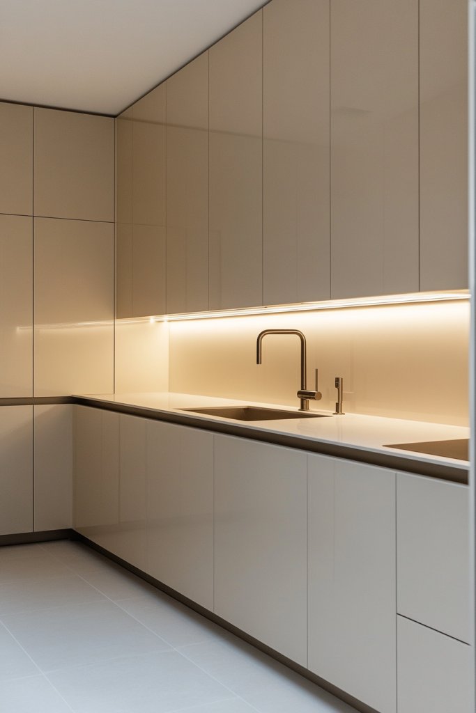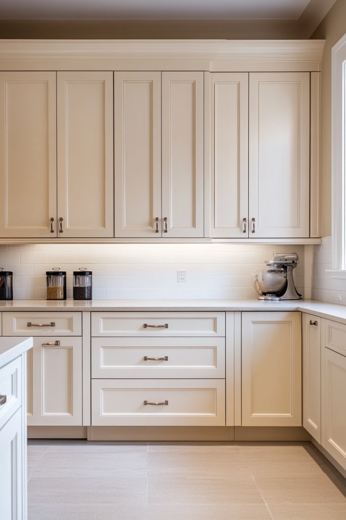12. Minimalist Cream Cabinets with Hidden Handles for a Sleek Finish