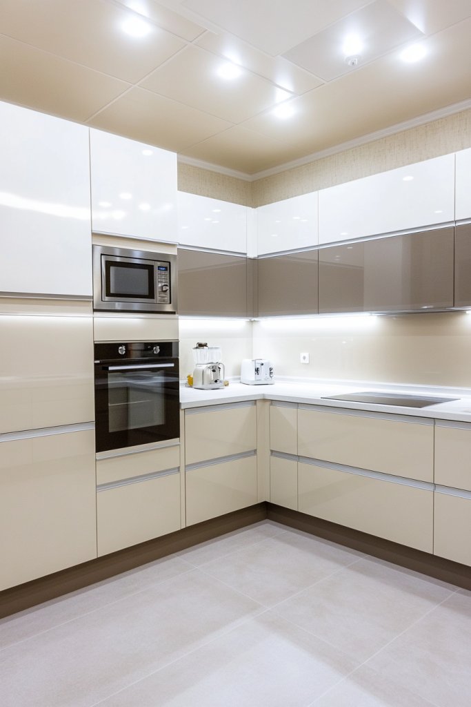 Craving a kitchen that screams luxury and modern elegance? High-gloss cream cabinets do just that, offering a shiny, reflective surface that instantly elevates your space. They make even small kitchens feel brighter and more expansive.