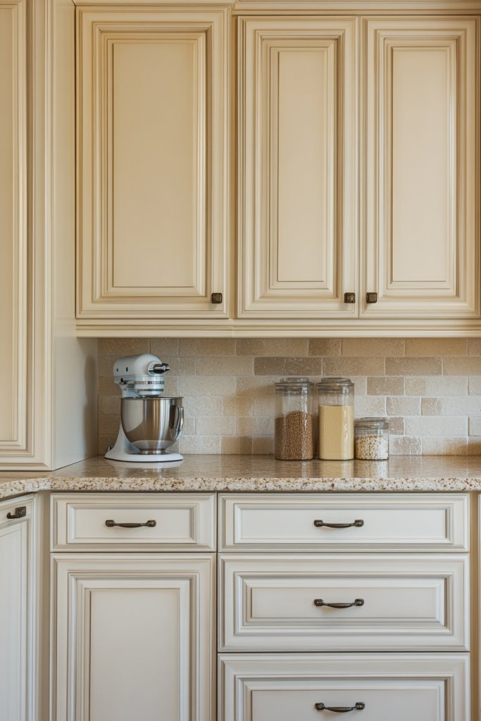 Looking for a kitchen finish that adds depth and tactile interest? Subtle textured finishes like milk paint or stucco bring a unique, handcrafted feel to your cream cabinets. They add character and charm without overwhelming the space.