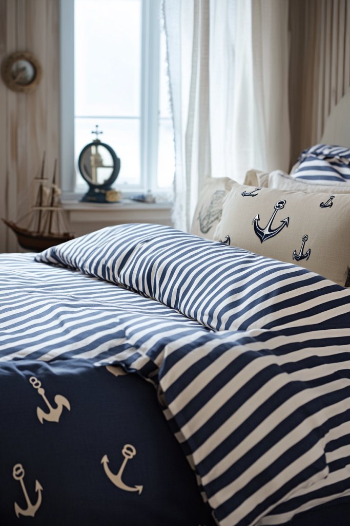 10. Nautical-Themed Bedspreads with Anchors and Stripes