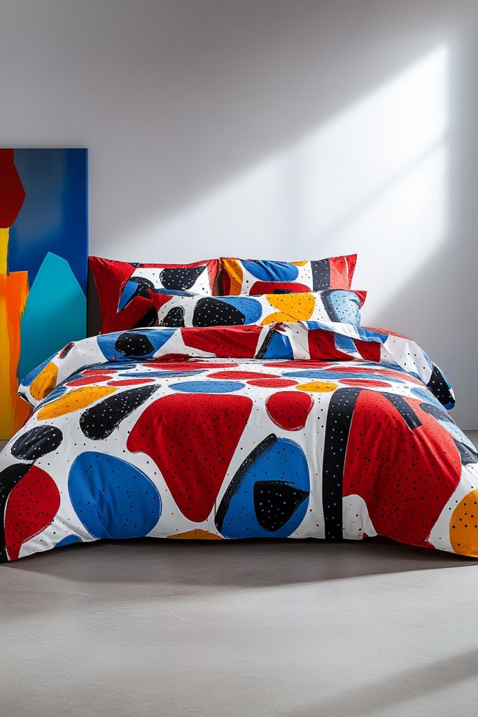Looking to inject your bedroom with creative energy and modern flair? Abstract art-inspired prints on bedding can turn your space into a gallery of bold, colorful expressions. They inspire creativity and make a statement without overwhelming the senses. If you love to stand out, this idea fuels your artistic side.